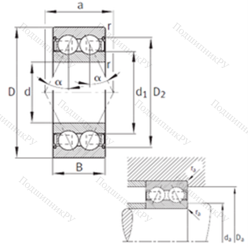 - 1 или 2 ряда тел качения, что позволяет воспринимать однонаправленные или двухсторонние осевые нагрузки;