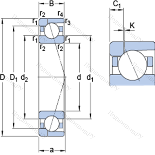 - При увеличении контактного угла устройство дает возможность перераспределять прилагаемые рабочие осевые нагрузки в аксиальном направлении и тем самым снижать давление, оказываемое на шарикоподшипники. Соответственно, при уменьшении данного показателя осесимметричный вектор приложения сил падает, а воздействие по оси растет.