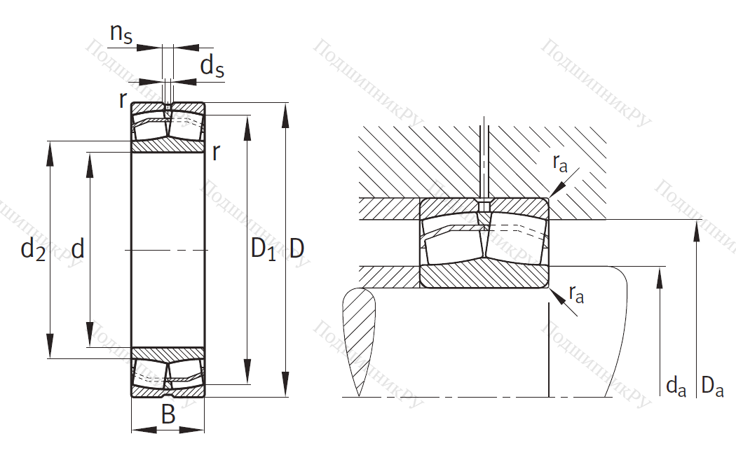 - двухрядный подшипник воспринимает комбинированные нагрузки (двухсторонние осевые и радиальную).