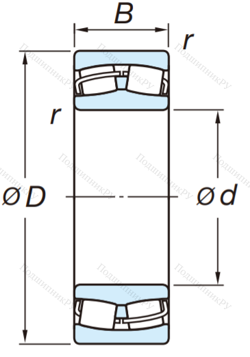 Сферический роликовый подшипник 22208 RZW33, представляет разновидность сферических роликоподшипников. В зависимости от типа может иметь один или два ряда тел качения в форме бочкообразных роликов. Однорядный имеет следующее конструктивное исполнение: массивная внешняя обойма, внутреннее кольцо, сепаратор, ролики. В зависимости от типа может иметь обоймы без бортов или с бортами. Является неразъёмным.