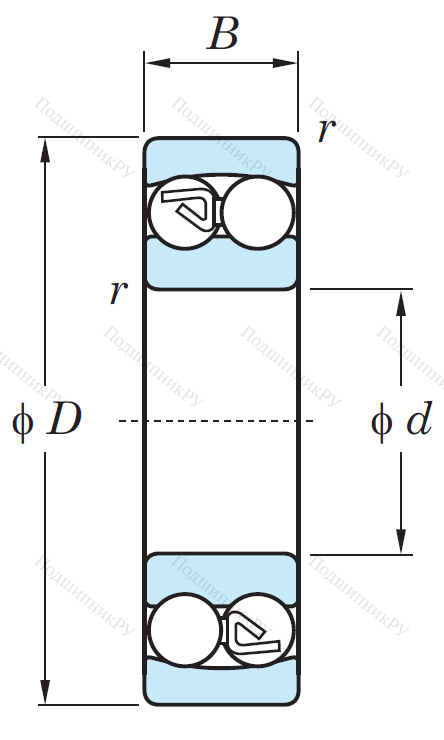 Какими особенностями отличается Двухрядный шариковый подшипник 1305 этого вида?