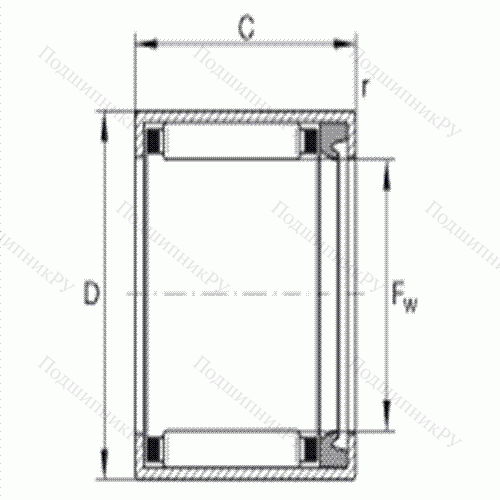 Подшипник роликовый игольчатый с одним наружным штампованным кольцом HK 1012-RS