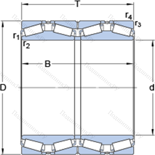 Четырёхрядные конические роликоподшипники конфигурации TQO 330540 AG у которого конструкционной особенностью являются ролики в форме конуса и разъемный корпус. Изделие также может быть укомплектовано наружным кольцом с упорным бортиком или большим углом, двухрядными или четырехрядными роликоподшипниками, утолщенной внешней шиной.