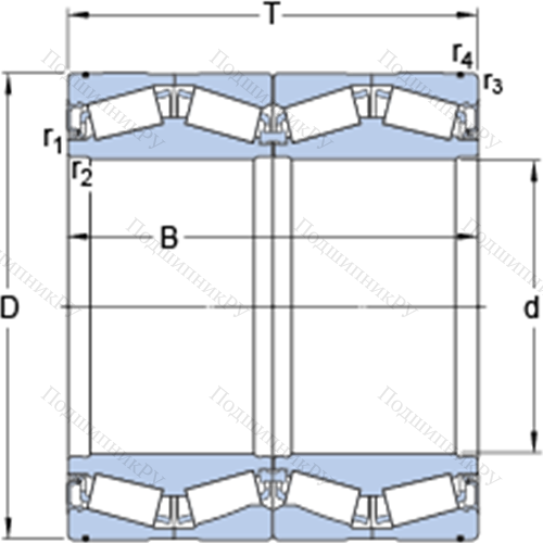Четырёхрядные конические роликоподшипники конфигурации TQO BT4B 328955 ABG/HA1VA902 у которого конструкционной особенностью являются ролики в форме конуса и разъемный корпус. Изделие также может быть укомплектовано наружным кольцом с упорным бортиком или большим углом, двухрядными или четырехрядными роликоподшипниками, утолщенной внешней шиной.