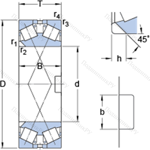 Двухрядные конические роликоподшипники конфигурации TDI BT2B 332167 C/HA3 у которого конструкционной особенностью являются ролики в форме конуса и разъемный корпус. Изделие также может быть укомплектовано наружным кольцом с упорным бортиком или большим углом, двухрядными или четырехрядными роликоподшипниками, утолщенной внешней шиной.