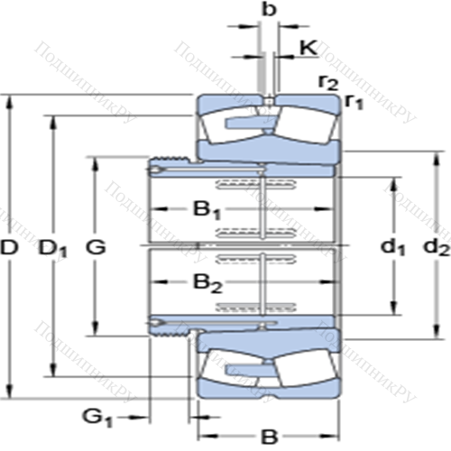 Сферические роликоподшипники на стяжной втулке 240/630 ECK30J/W33 + AOH 240/630 G у которого конструкционной особенностью являются ролики в форме конуса и разъемный корпус. Изделие также может быть укомплектовано наружным кольцом с упорным бортиком или большим углом, двухрядными или четырехрядными роликоподшипниками, утолщенной внешней шиной.