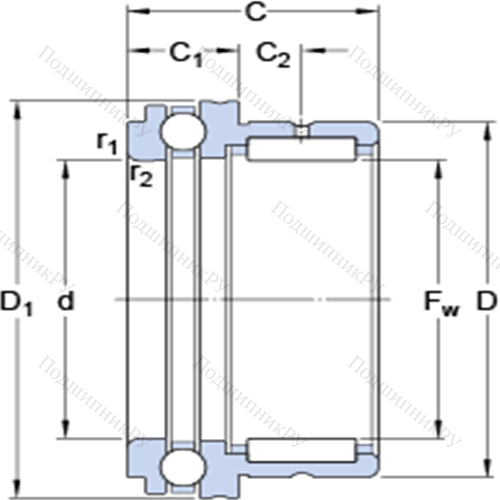 Комбинированные упорные шарикоподшипники с игольчатыми роликами NKX 45