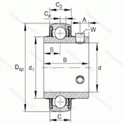 сферическое наружное кольцо, фиксация эксцентриковым закрепительным кольцом, двусторонние P-уплотнения