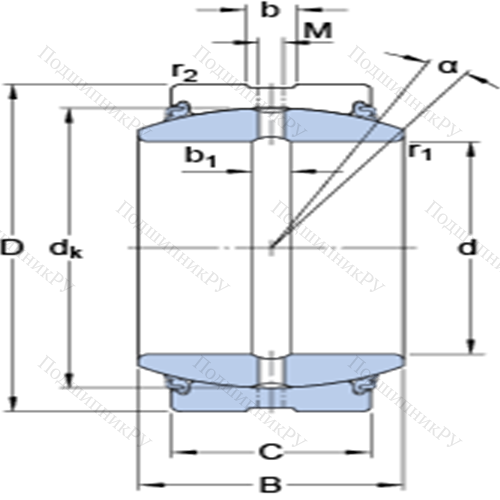 Радиальные сферические подшипники скольжения с контактными поверхностями сталь/сталь, требующие техобслуживания GEZ 112 ES-2LS