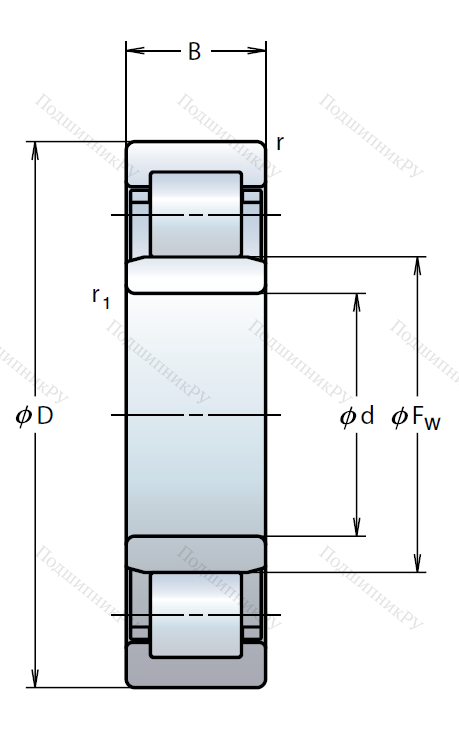Роликовый цилиндрический подшипник NU 2219 W, это разновидность однорядного роликоподшипника в метрическом исполнении.