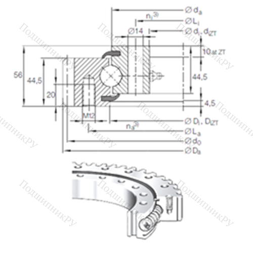 Подшипник шариковый опорно-поворотный VSA 20 1094 N