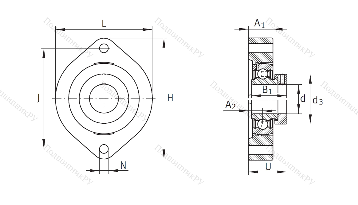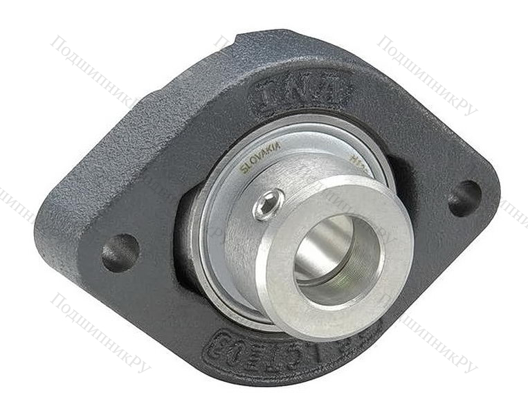 Конструкция имеет фланцевый корпус из серого высокопрочного чугуна, оснащенный эксцентриковым кольцом для закрепления и уплотнениями разновидности Р. Не является обслуживаемым, то есть не нуждается в повторном смазывании (для других деталей описание здесь).