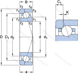 | Номинальная динамическая грузоподъёмность | C | 41.6 | kN | |