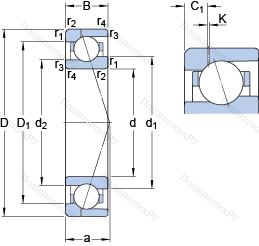 | Номинальная динамическая грузоподъёмность | C | 28.6 | kN | |